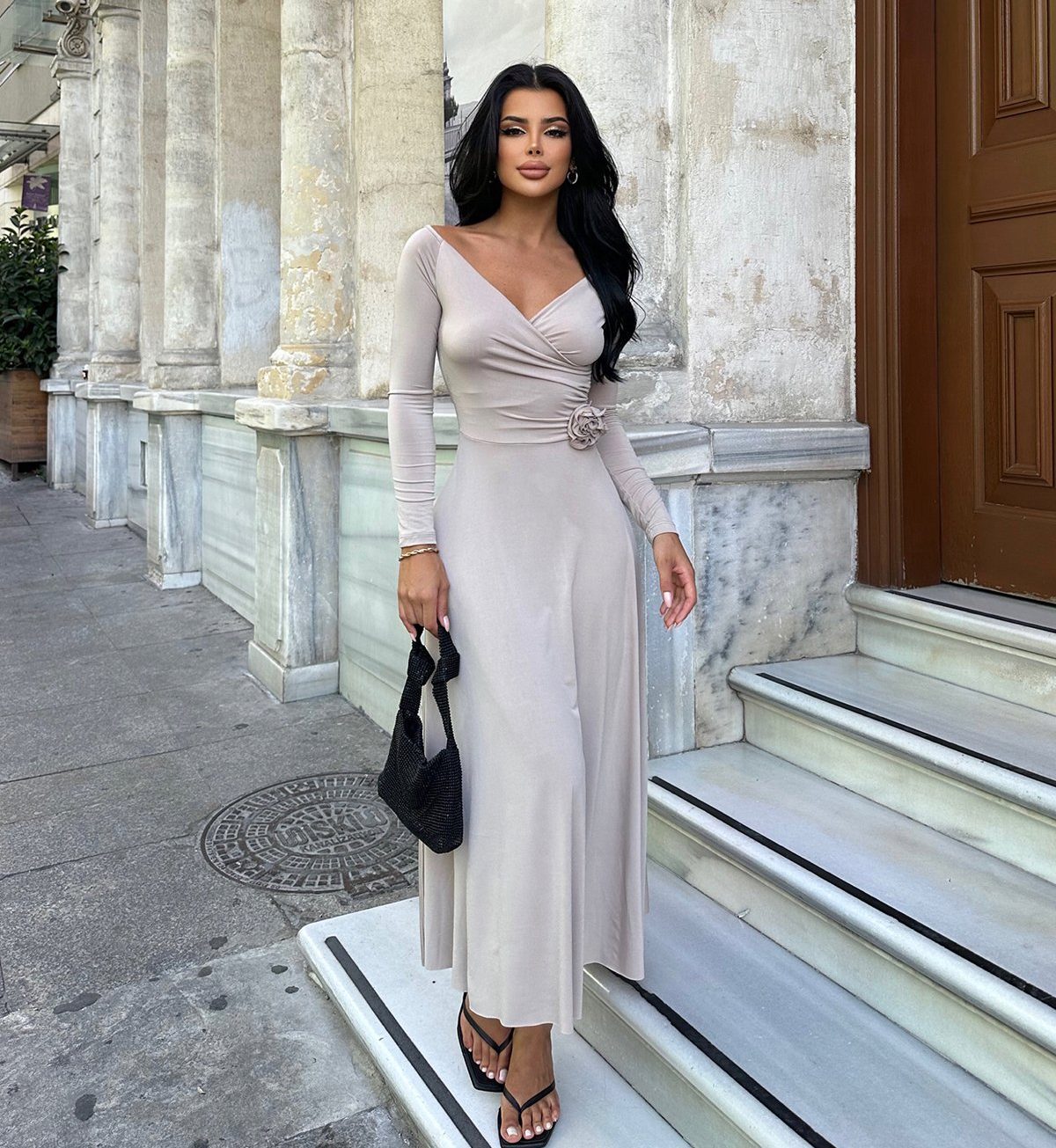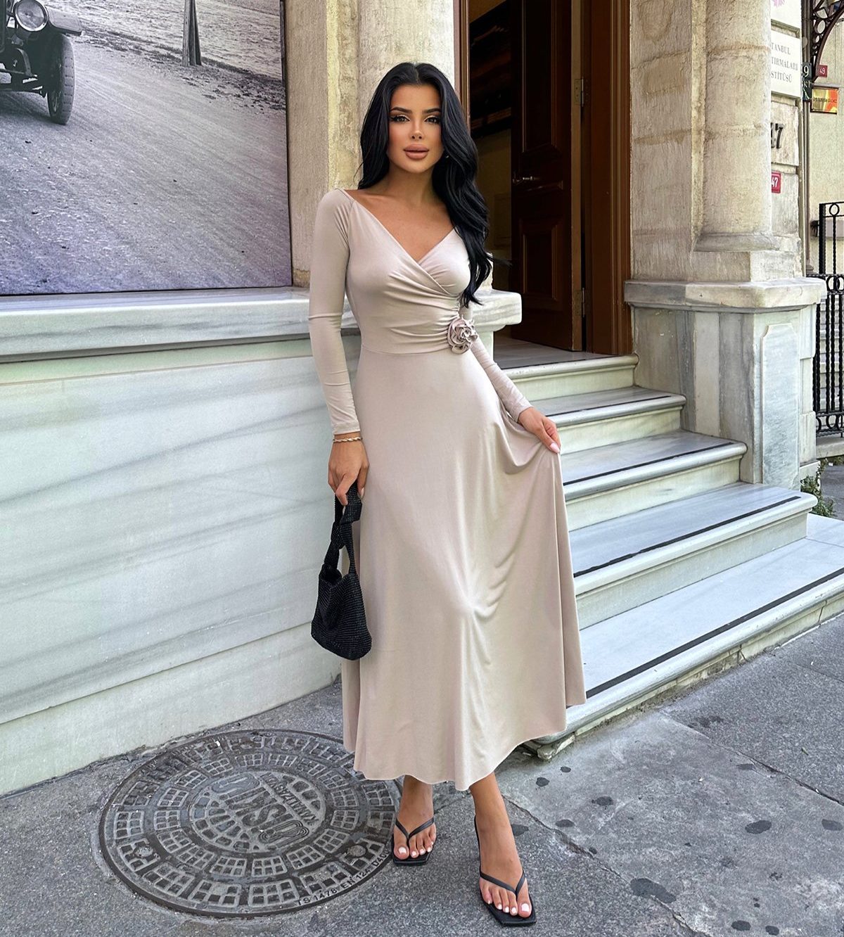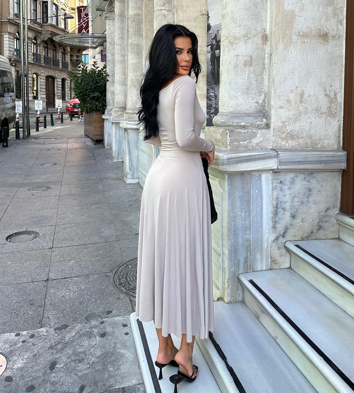 Le mannequin porte une taille S et mesure 1m60. Robe : 119cm