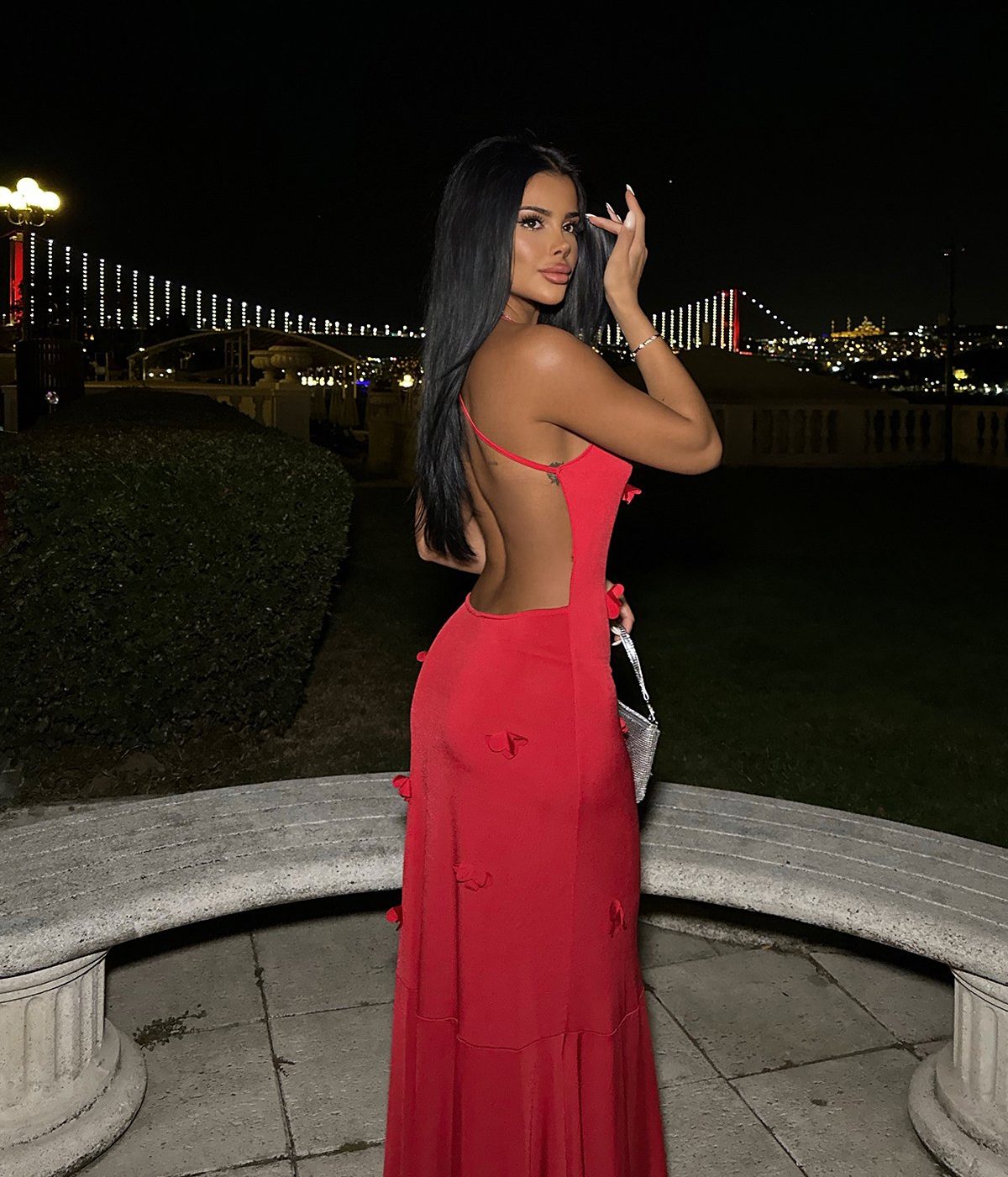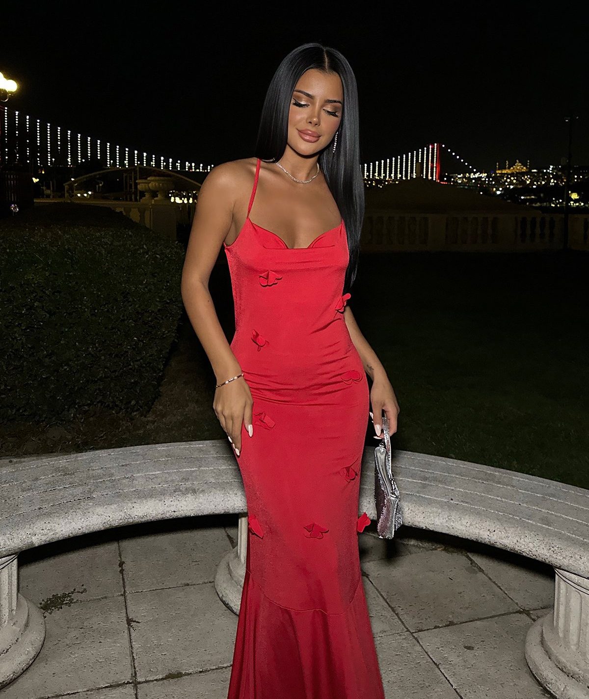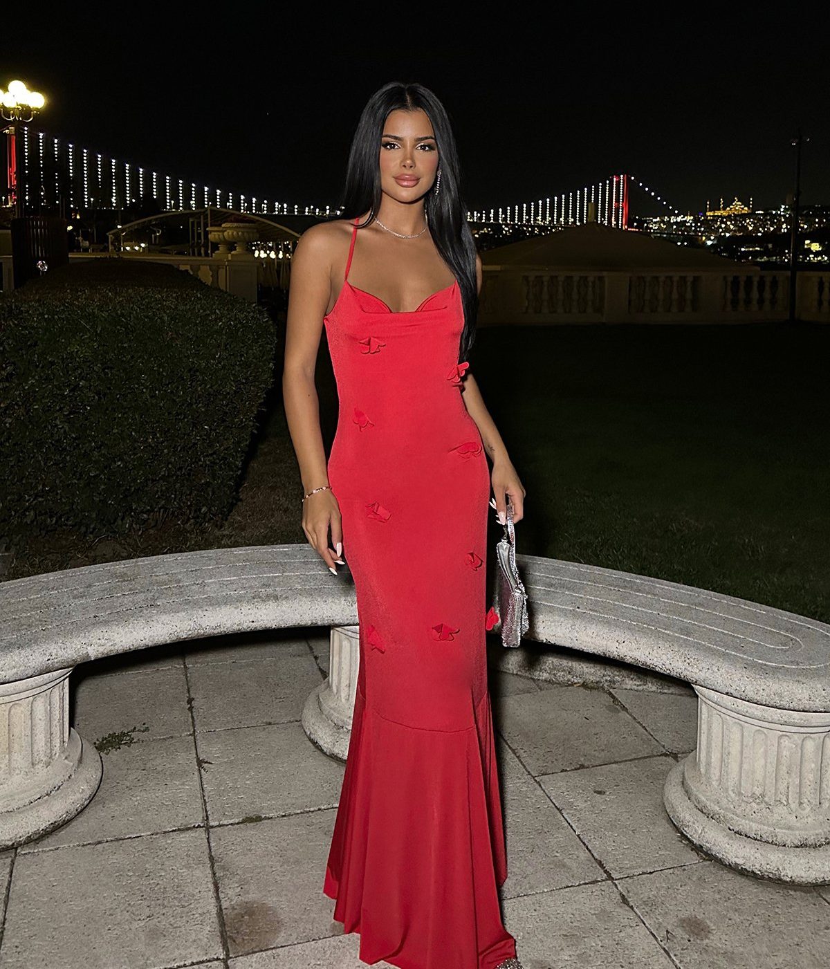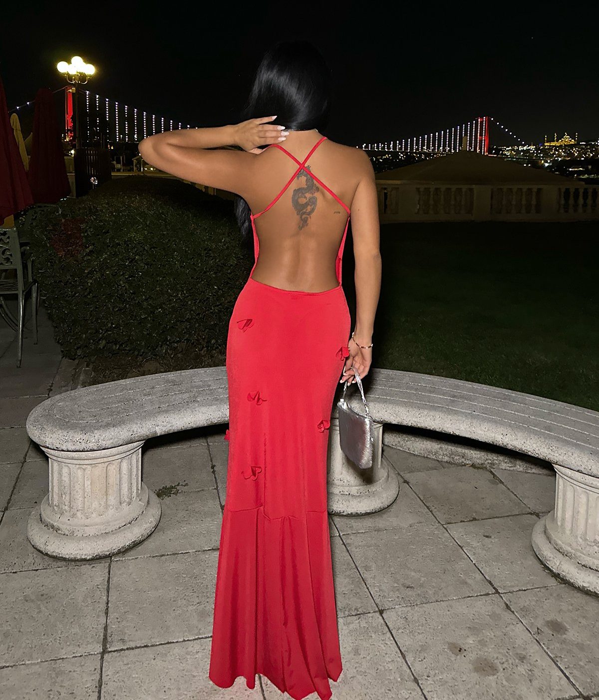 Le mannequin porte une taille S et mesure 1m60. Robe : 129cm