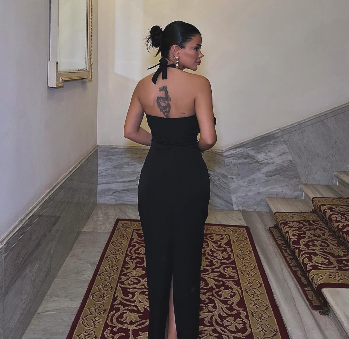 Le mannequin porte une taille S et mesure 1m60. Robe : 118cm